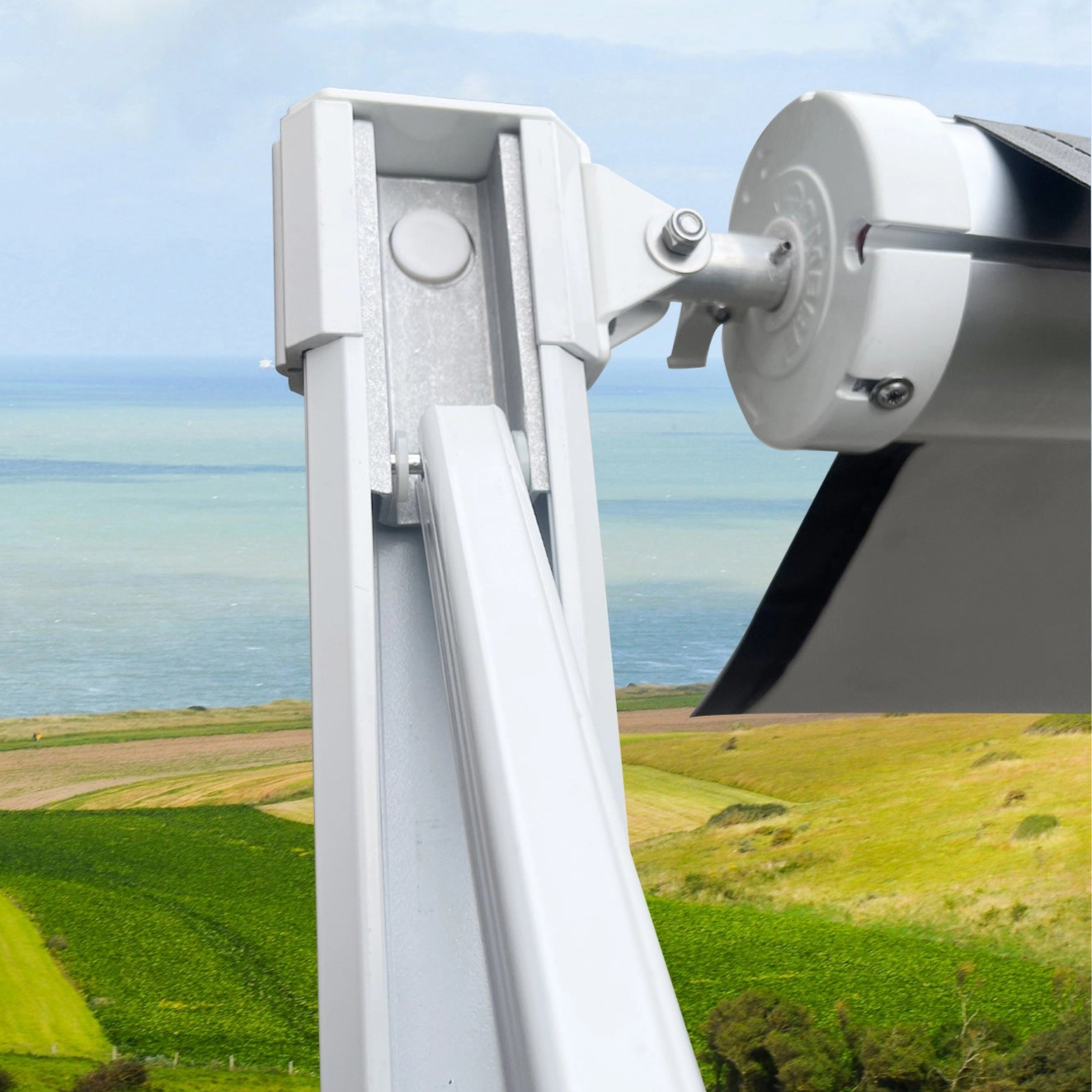 Manual RV Awning Complete Awning Kit,White Frame-Black Fabric, 10Ft(9'2'' Fabric)