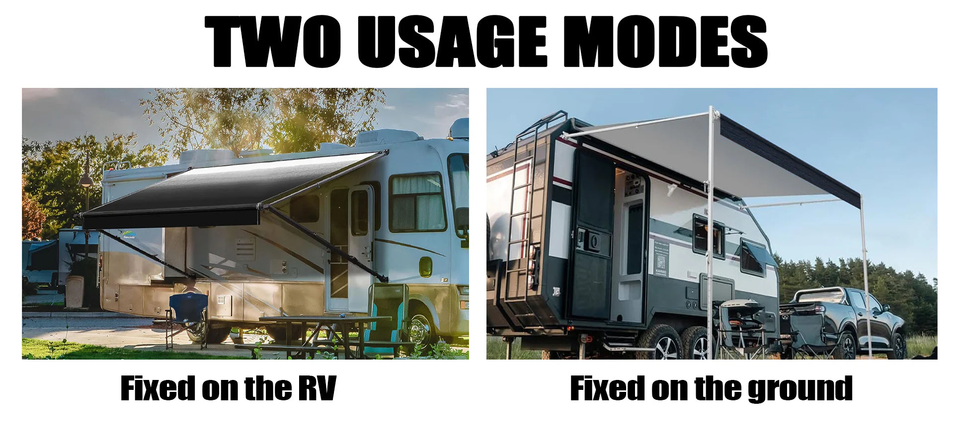 It is directly fixed to the side of the caravan or camper and can be unfolded to form a spacious shade area, which is very suitable for long-distance travel and camping.