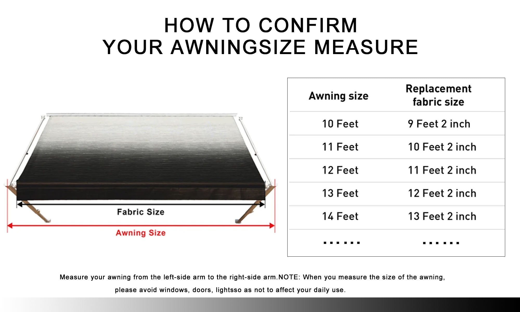 How do you know which size awning fabric to order?
