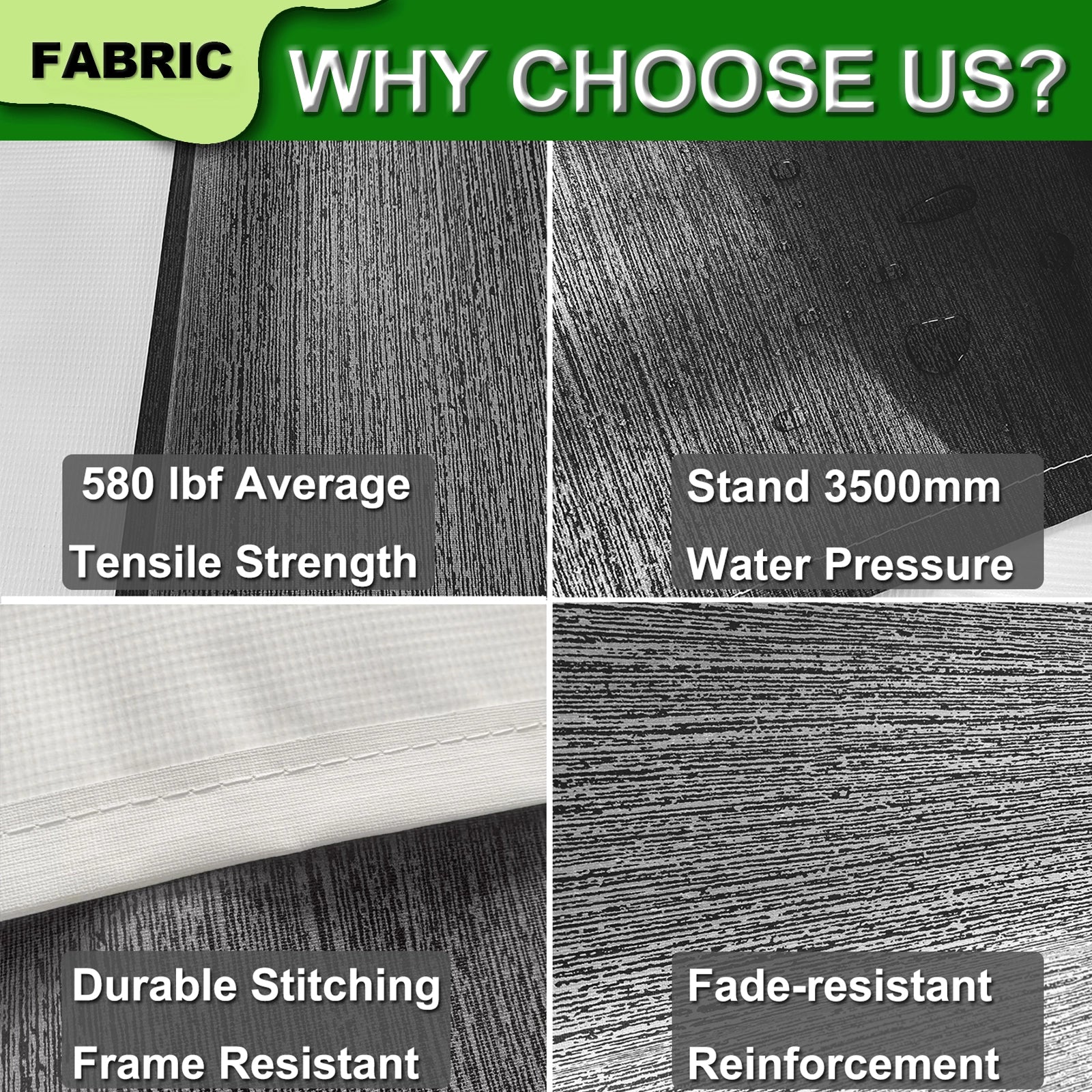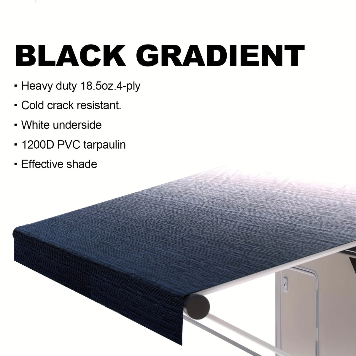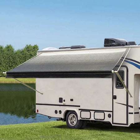 The RV awning fabric is made of high-quality 18.5 oz (approximately 577 grams) vinyl, which is durable, waterproof, UV-resistant, sun-resistant, and has excellent light-blocking properties.